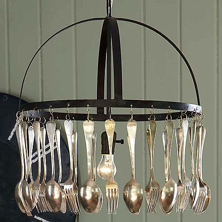 La reutilización de cubiertos de plata son perfectos para crear una lámpara de cocina de lo más elegante...