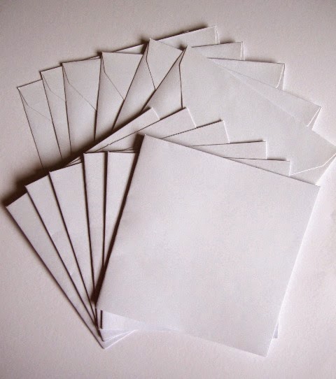 Lo principal del pack y con lo que trabajaremos son con las 6 tarjetas de 29 cm (dobladas por la mitad) x 14,5 cm de cartulina blanca y sus 6 sobres.