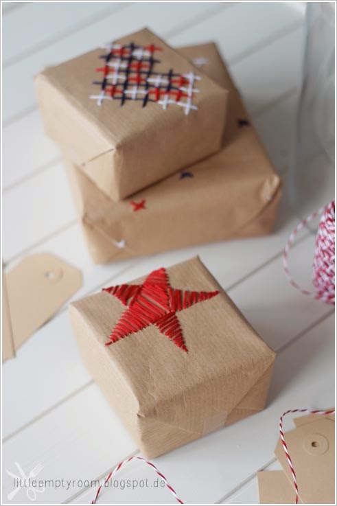 6 - Este te lo puedes apuntar para Navidad: papel kraft bordado con hilos de colores.