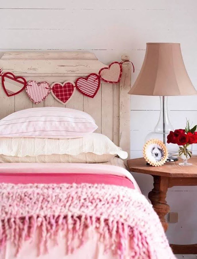 2. Una guirnalda de corazones deja el dormitorio super femenino y Shabby Chic.