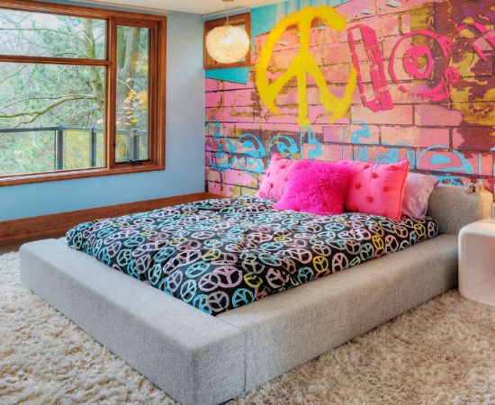 4. Para un cambio mas radical, revestir una pared con madera y pinta con graffitis! Seguro les encantara!