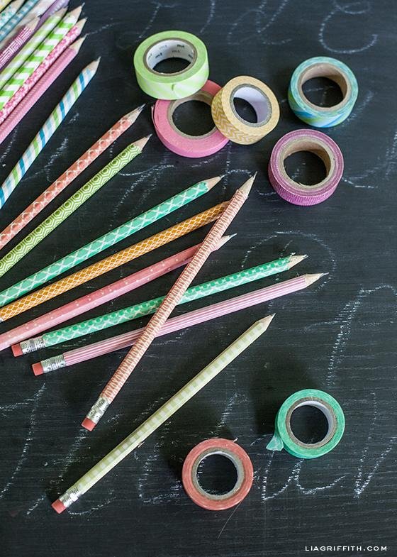 Esta idea es la mas sencilla de todas pero a la vez es super bonita, si ya estas aburrida de esos lapices sin color y todo mono tomos pues esta es la solución fácil y rápido, solo tienes que forrar tus lapices con Washi tape y listo, si el color de la madera del lápiz es oscura pues los puedes pintar primero con pintura acrílicas y luego los forras con el Washi tape.