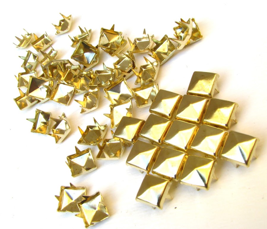 ? GRAPA/PUNTA: Las básicas y por tanto las más baratas, suelen tener 2, 4 o 6 grapas dependiendo del tamaño de la tachuela.Son para clavar en la tela,se aplica con ayuda de un alicates de manualidades o bisutería, tienes que clavar las puntas y con ayuda del alicates se doblan hacia dentro.