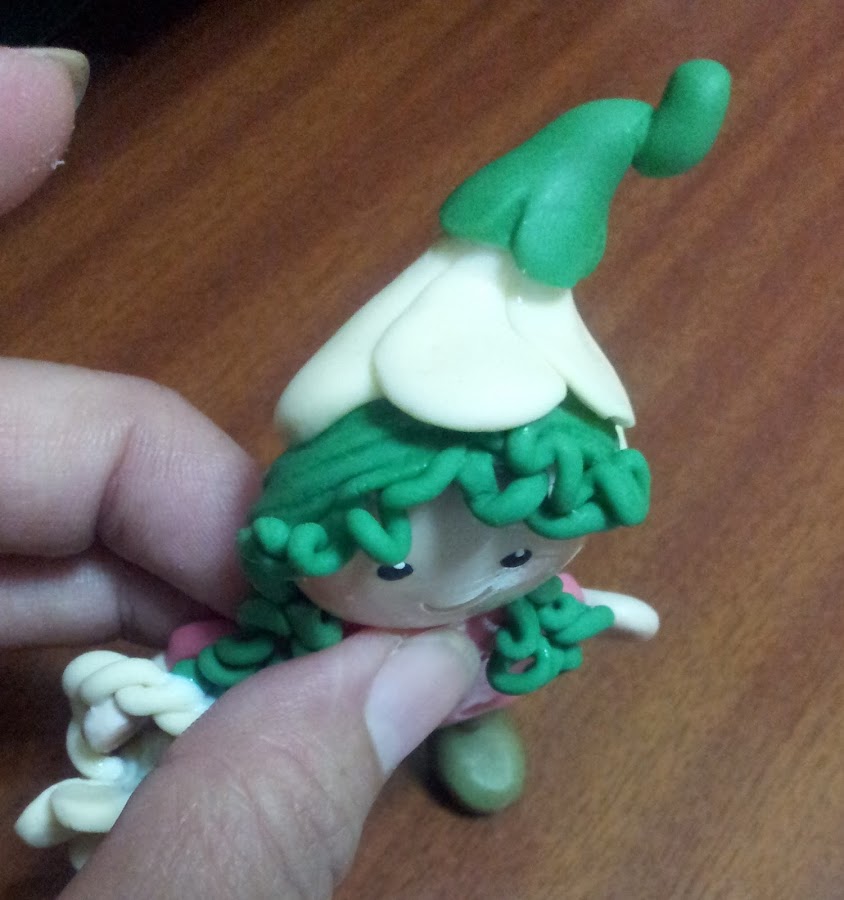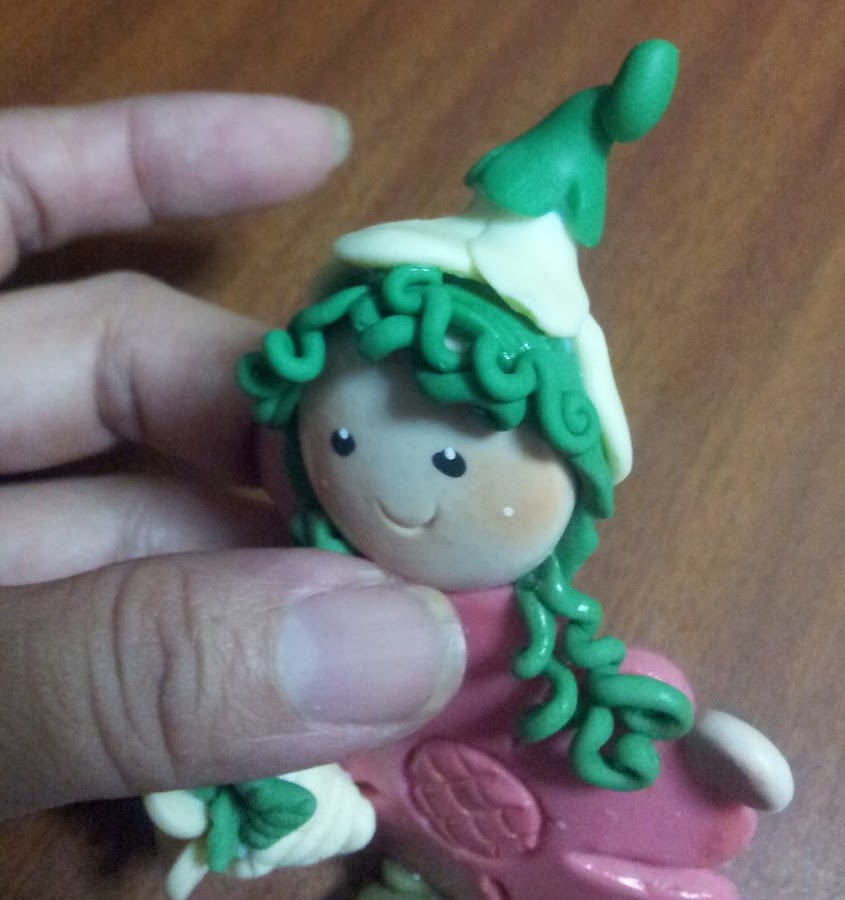 4.- Elaborarr el cabello, aplicando el cortador de círculos. Y agregar cabellos sueltos y enrollados.