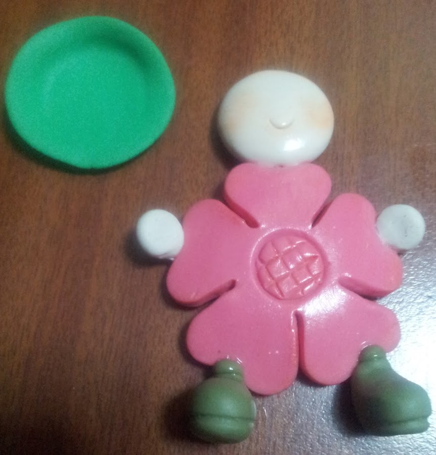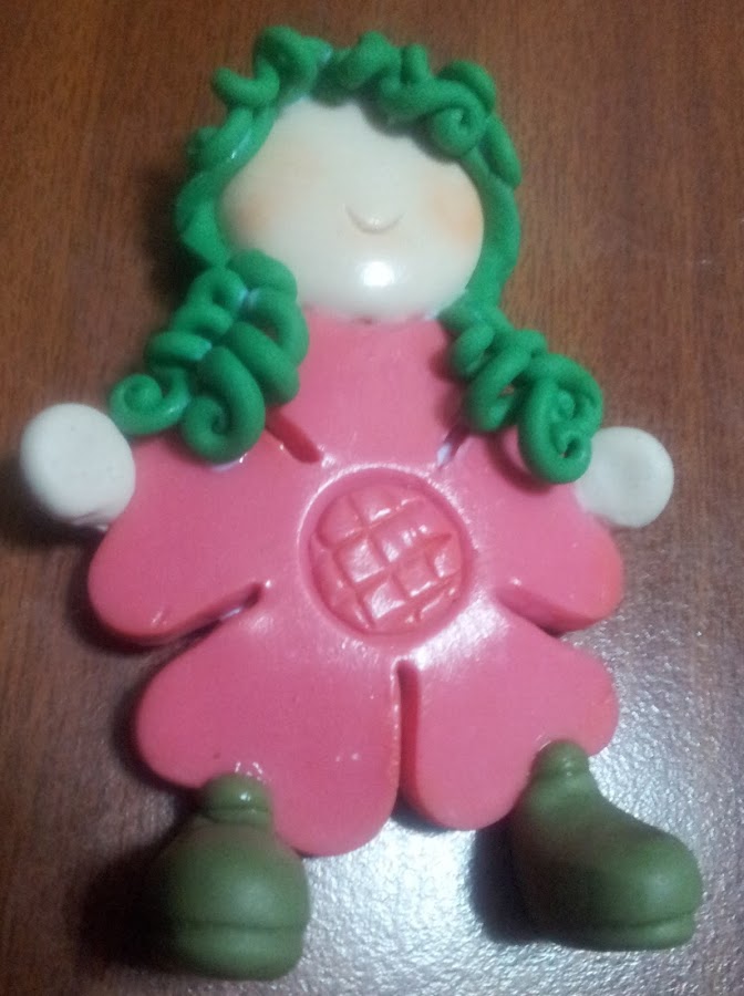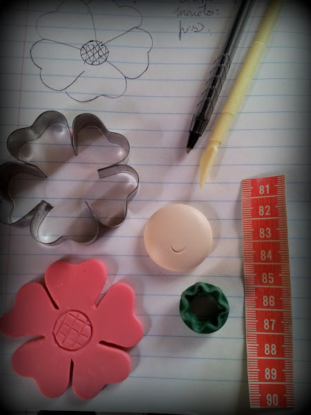 2.- Realizar la carita y la flor, estirando con rodillo, masa color piel y rosada, aplicando los cortadores.