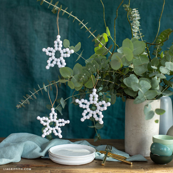 También podemos decorar el árbol de Navidad con unas estrellas creadas con bolitas de fieltro blanco. Necesitaras comprar unas bolitas de fieltro que puedes encontrar en cualquier tienda de manualidades, un alambre fino y seguir el tutorial.