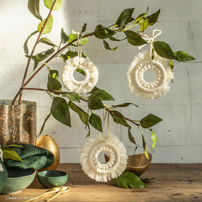 Estos adornos son perfectos para decorar el Árbol de Navidad. Esta idea es de Lia Griffith, pero seguro que podéis hacer vuestras propias ideas si sois unos espertos en este arted el macramé.
