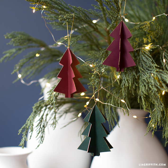 Esto abetos de Navidad 3D o pueden ser más sencillos. Elige el papel el color que más se adapte al estilo de la decoración navideña de tu hogar listo. Tan solo tienes que segui el tutorial que nos ofrece Lia Griffith