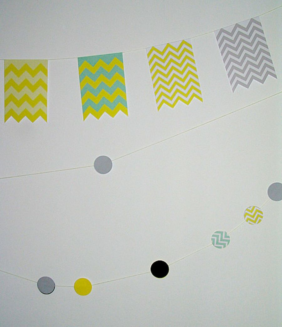 1 Para decorar el evento podemos hacer unos banderines con cuerda y papel estampado, como la que encontramos en el blog Madre de mi alma, con un popular estampado chevron. Una opción fácil pero muy estética, con la que llenar todo el espacio.