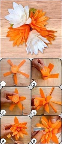 8.-Usa cebolla blancas y zanahorias para hacer lindas flores decorativas