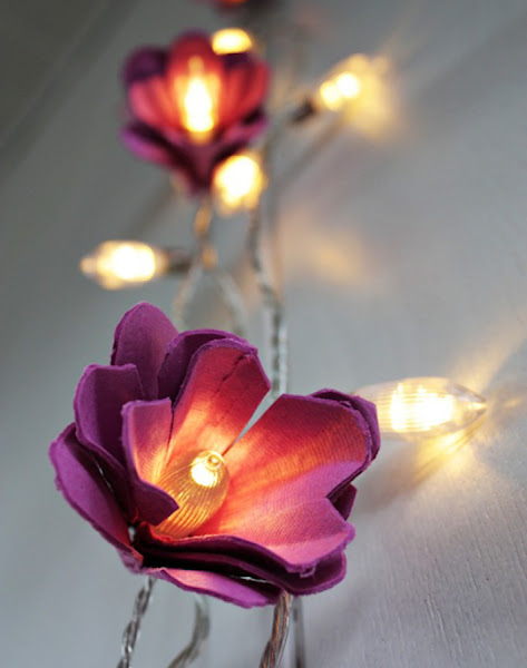 Aunque parezca increíble esta preciosa guirnalda de flores está realizada con hueveras de cartón recicladas. El tutorial lo podéis seguir aquí.