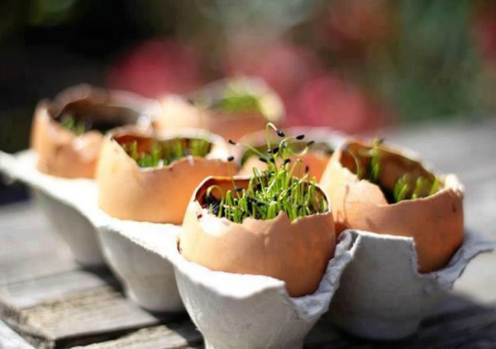 También podemos reutilizar las hoveras y la cáscara de los huevos ya usados para crear semilleros. Además lo mejor es que no necesitamos hacer trasplante ya que podemos ponerlo con cascara y todo y aportaremos calcio al suelo.