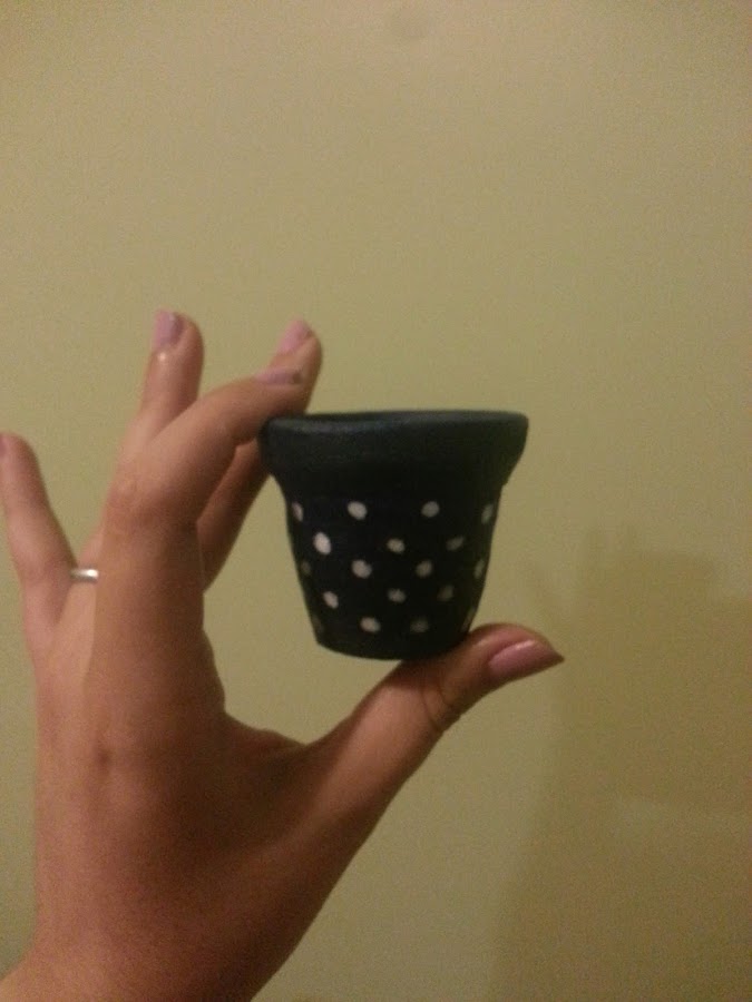 Hoy tenemos unas simpáticas macetitas pintadas al estilo polka dot. Algo pequeño pero super fácil y rápido de hacer; las pueden usar para lo que quieran (mi caso: les pondré plantitas y las regalaré en navidad).