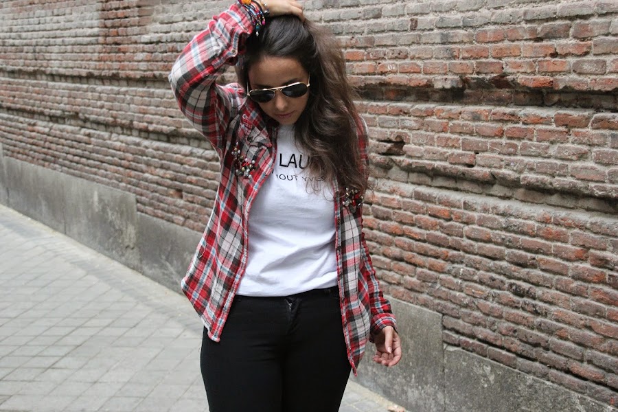 En este post, saco una de mis camisas preferidas, la compré hace 5 años y la customicé el año pasado. Y por más que la he lavado no se les ha ido ninguno de los abalorios que le puse!!!! MUY FUERTE!!!! Además las camisas de cuadros se van a llevar mucho esta temporada, es un estilo skeater que está arrasando, sobre todo a capas, es decir: camiseta, luego camisa, luego bufanda, luego chaqueta.... Y así como una cebolla!!!