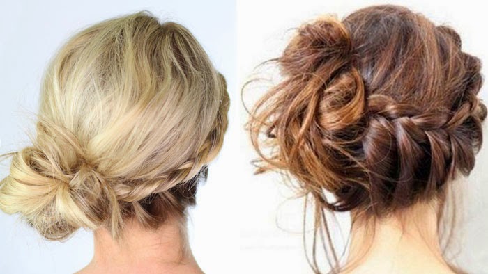 2. Un moño desordenado, que consiste en una trenza en cascada que sale de la sien hacia el lado opuesto de la nuca, donde se recoge con horquillas en un moño desecho. AQUÍ el videotutorial.
