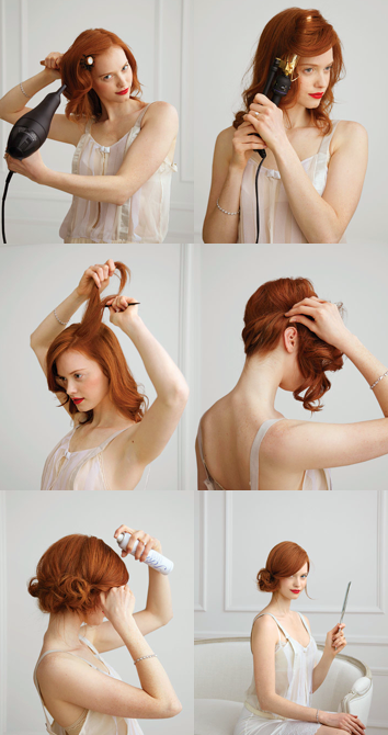 5. Este peinado se merece un wooauh!!. Consiste en peinar el cabello con un cepillo redondo para marcar las ondas y recogerlo en un moño lateral ayudándose de horquillas y fijador.
