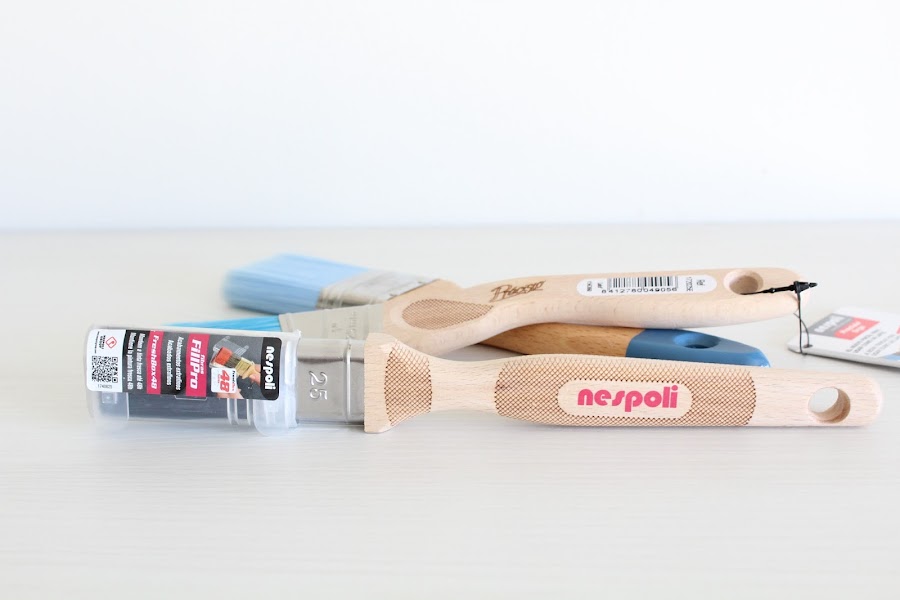 He usado los pinceles de la marca Nespoli Rulo Pluma que nos regalaron en el Taller de Grupo Pyma, tengo que decir que el mango ergonómico y la calidad de las cerdas es realmente genial, en una pasada la cobertura del pintado es excelente.