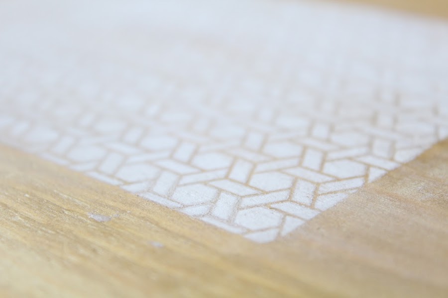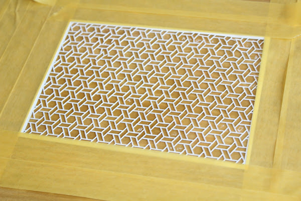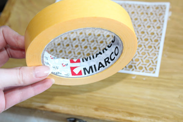2 PASO: Para decorar nuestra caja, usaremos una plantilla. Para sujetar la plantilla y tapar las zonas que no queramos pintar usaremos la cinta washi de Miarco, es un básico perfecto para nuestros DIYs a la hora de retirar es genial que no se desconche o se retire la pintura, lo mejor no deja residuos.