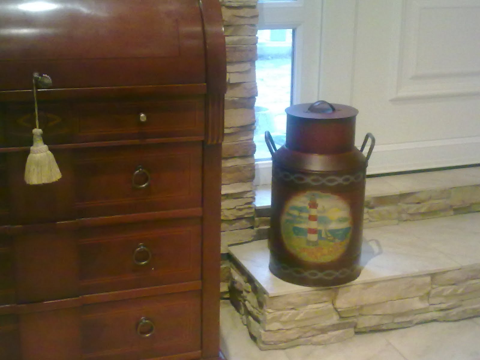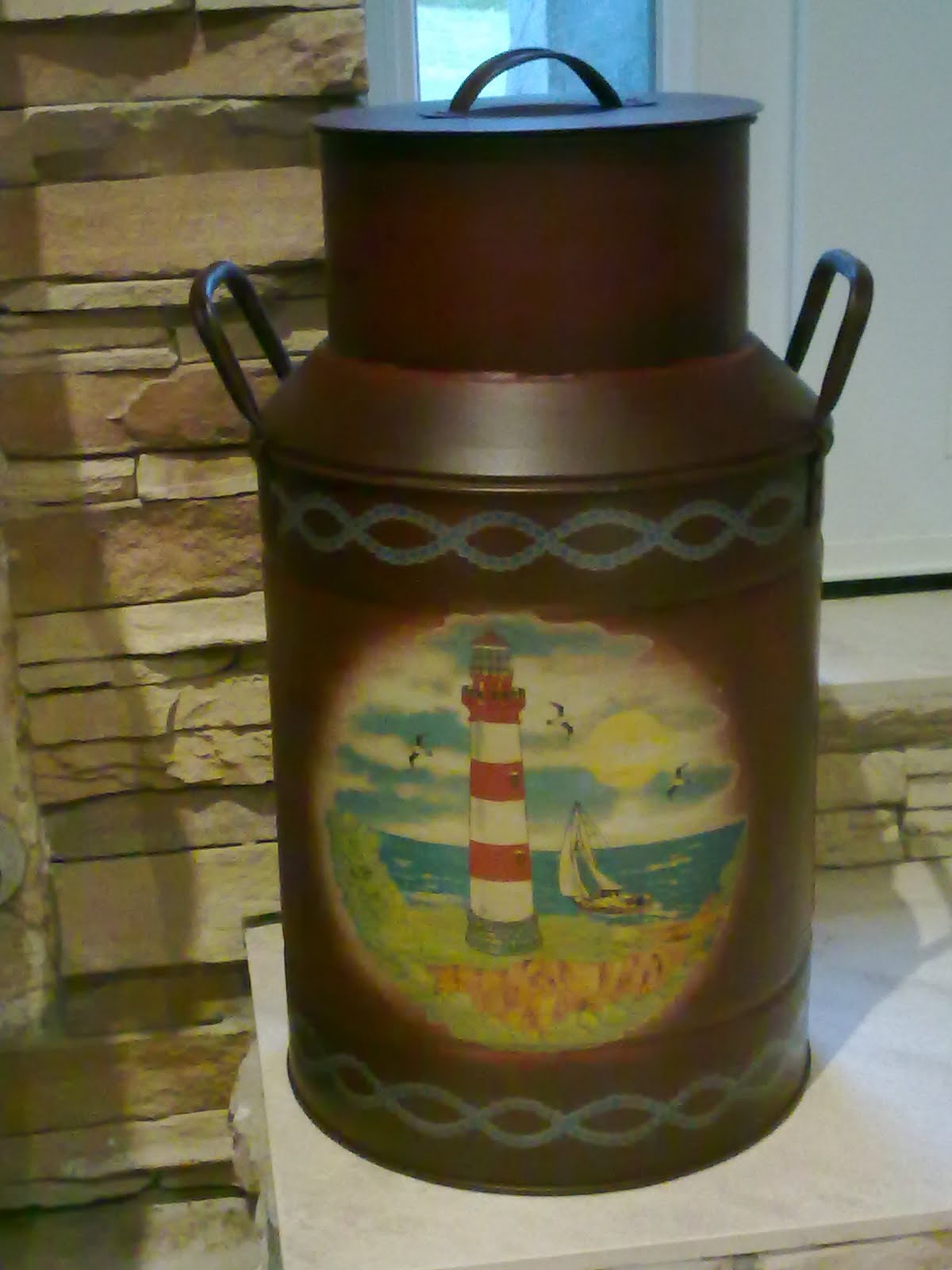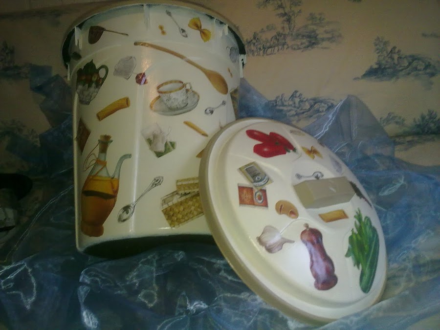 Un cubo para la basura decorado en decoupage. En la vida se me hubiese ocurrido a mí.....Original como el solo.