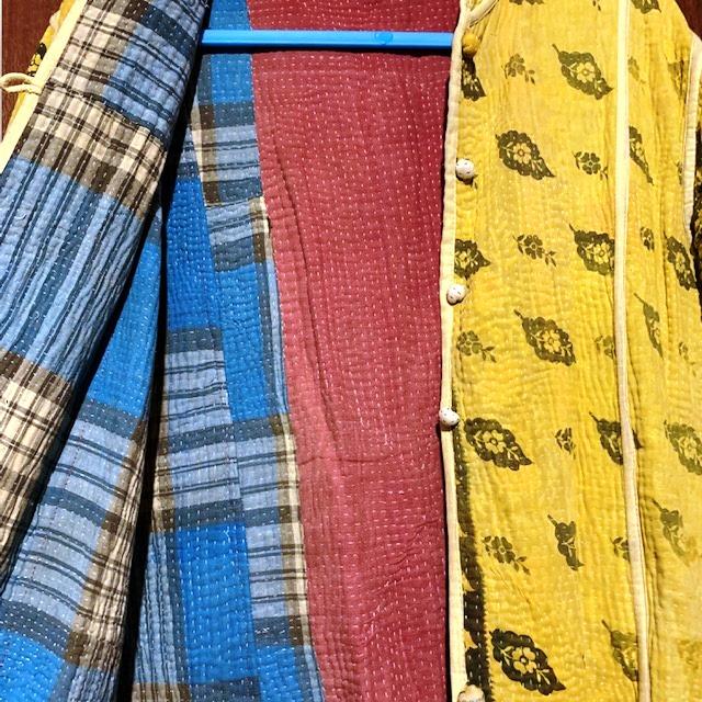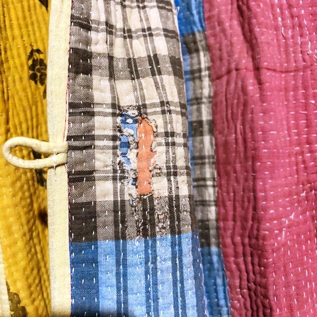 Todas las telas son buenas para estos proyectos, y para unirlos se utilizarán hilos de diferentes colores y grosores, usando punto hilván. La pieza de dos o tres capas de tela, se mantendrá unidad gracias ese punto tan fácil y rápido de hacer.