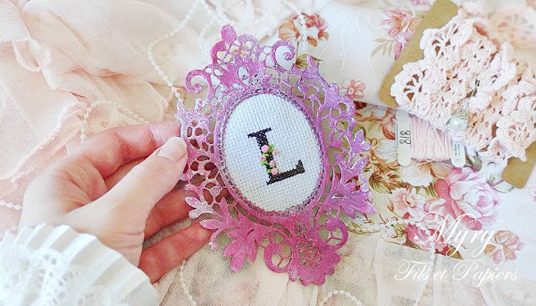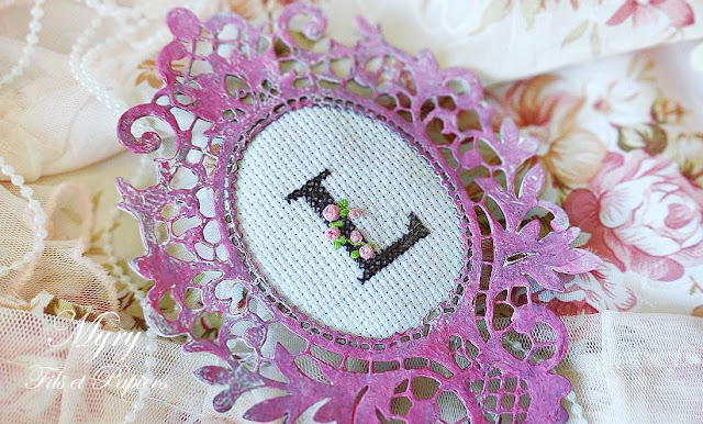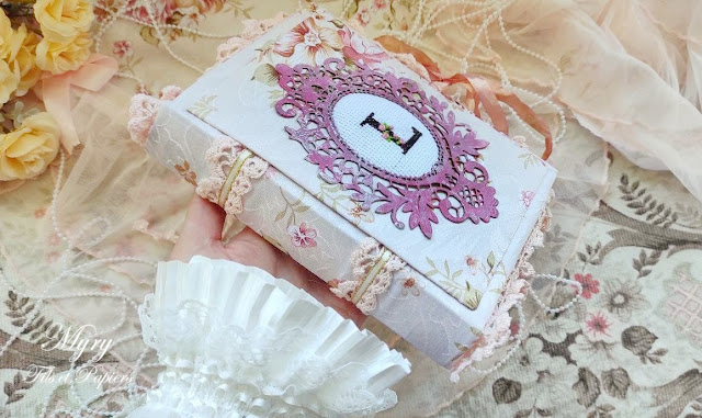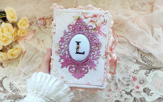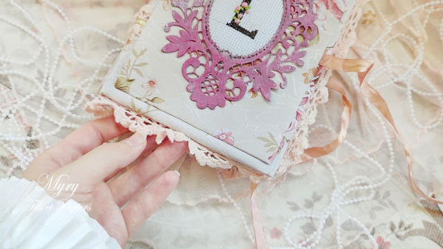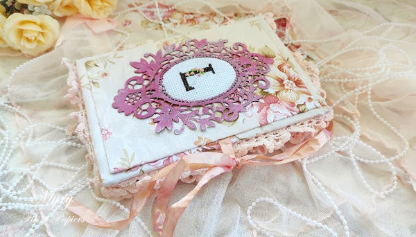 I used this exquisit chipboard "Lace frame" from Gypsy Soul Laser Cuts for the cover.