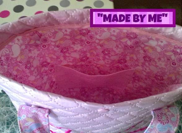 Esta forrada con tela en el interior, y con un practico bolsillo dentro en tela rosa lisa, para encontrarlo facilmente.