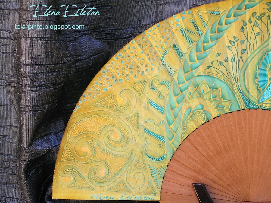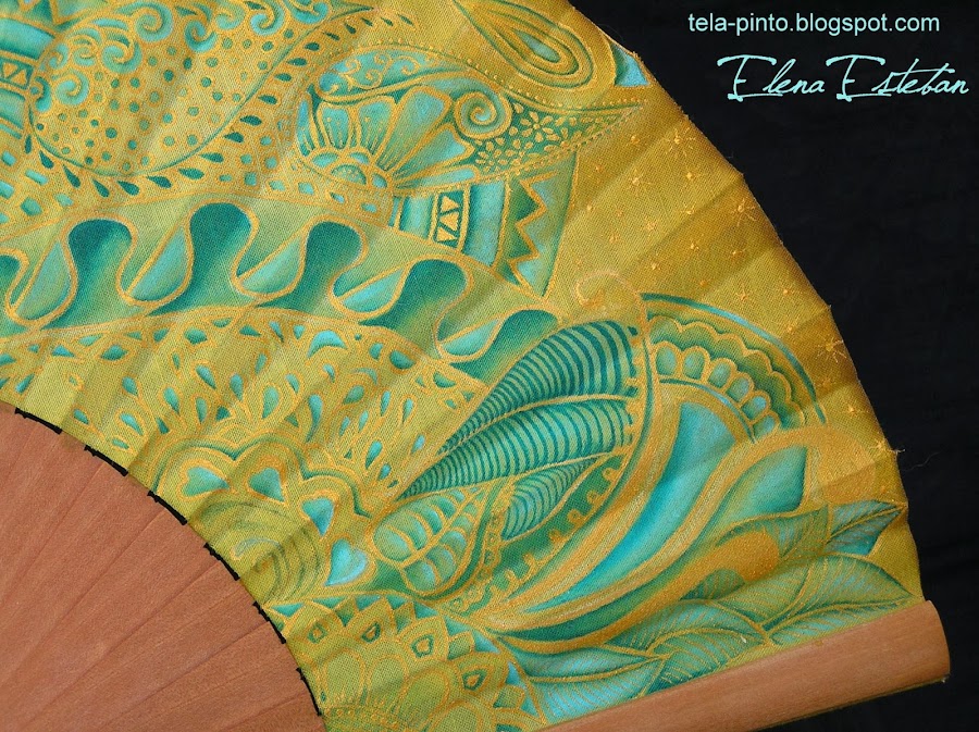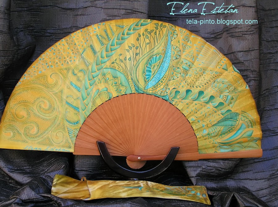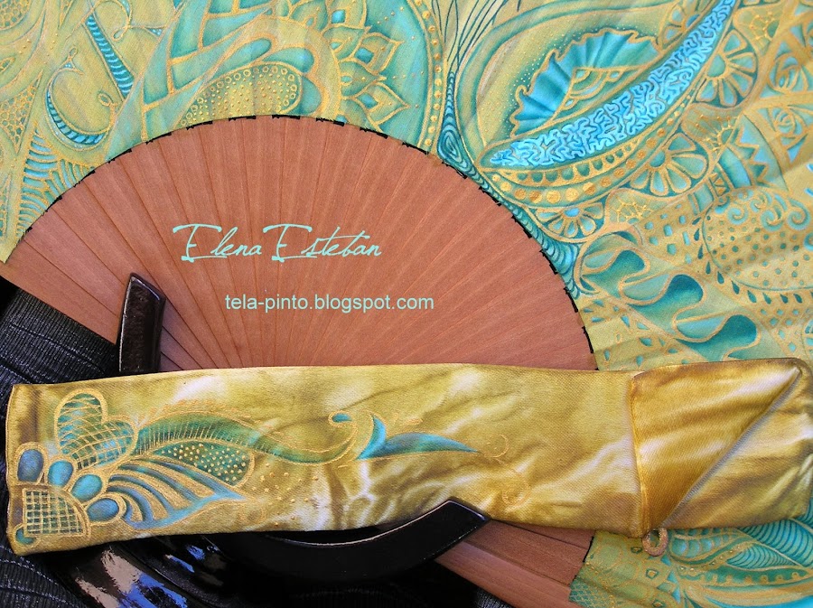 Eligió el abanico Samarkanda, pero tenía que ser en otros tonos, y personalizado con su nombre.