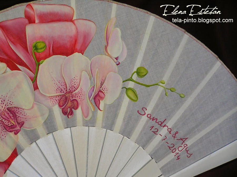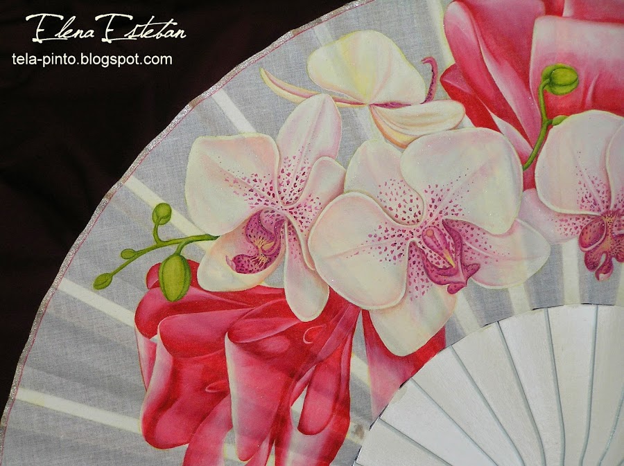Abanico en madera de danta lacada, país de algodón pintado a mano