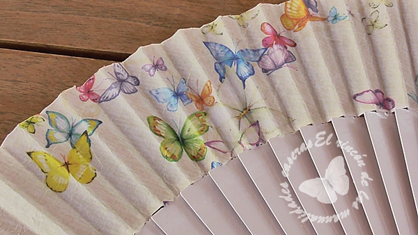 Es muy sencillito, abrimos el abanico y en la parte de la tela le aplicamos cola blanca rebajada con agua, le ponemos la servilleta, que previamente habremos recortado a la medida y quitado las dos capas de papel que lleva quedándonos con la que tiene el dibujo, y la iremos pegando con cuidado de que no se nos rompa.