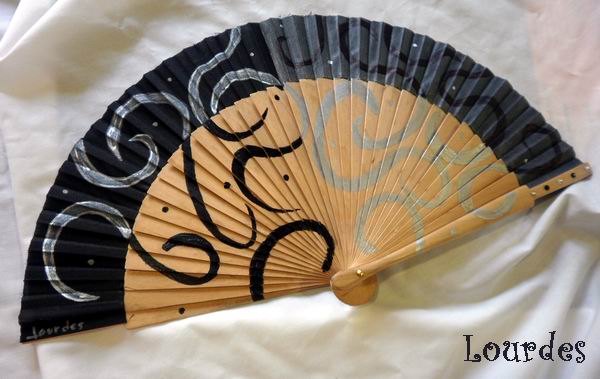 Y hoy, otro tutorial de como pintar un abanico. Pero este totalmente diferente al de las amapolas que os enseñé. Se trata de un super abanico. Un Pericón y de los grandes. Es todo negro y me pidieron que lo pintara en tonos plateados, que contrastan muy bien con el negro y le dan un aire clásico y elegante. Lo primero es marcar las ondas que llevará el abanico. Como es grande y pesado no es n ...
