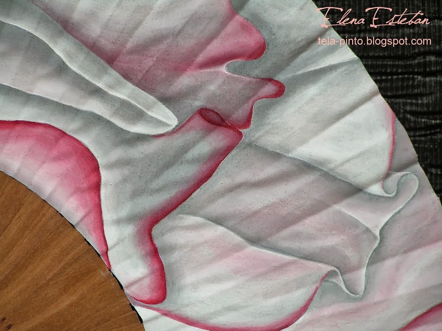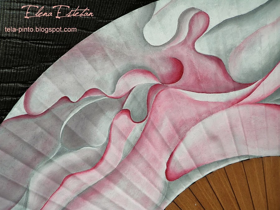 Mirando cuadros de Georgia O"Keeffe, me gustó uno especialmente, y decidí adaptar el diseño a un abanico.