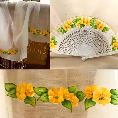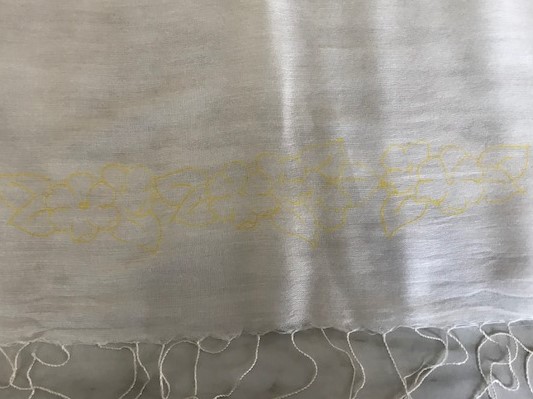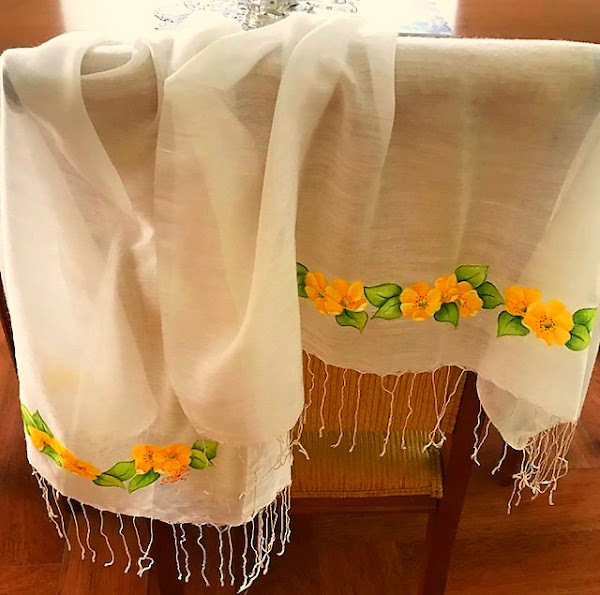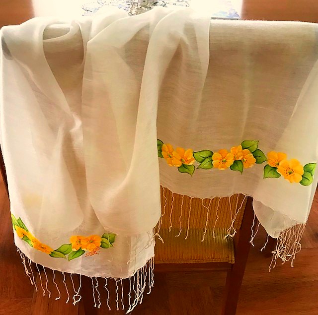 He escogido un chal de seda con algo de mezcla de algodón que me compre en un viaje y estaba esperando que le pintara algo.