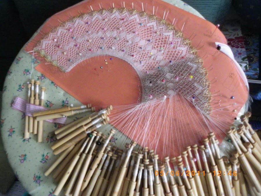 Cuando retomé hace unas semanas esta sección sobre el encaje de bolillos, hablándoos de los 2 movimientos para 12 puntos de encaje de bolillos incluí en dicho listado el pie. Reconozco que el pie no se puede considerar un punto como tal, aunque lo incluí porque es una parte muy importante de toda labor de bolillos. Pero, ¿qué es entonces el pie en una labor de encaje de bolillos?, ¿para qué sirve? ...