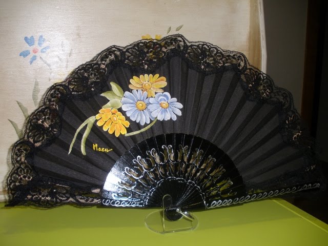 Con una niña de un añito poco se puede hacer, pero he ido sacando raticos y aqui esta mi primer abanico pintado a mano, Tela-pinto me ha ayudado mucho con sus consejos, estoy contenta con el resultado ...