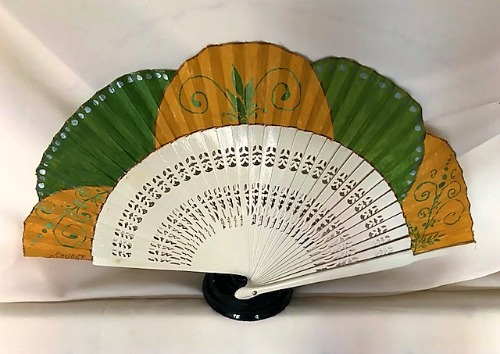 y ahora le toca al abanico blanco,bueno varillaje blanco y país con color verde y mostaza para un modelo especial
