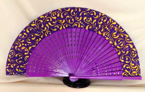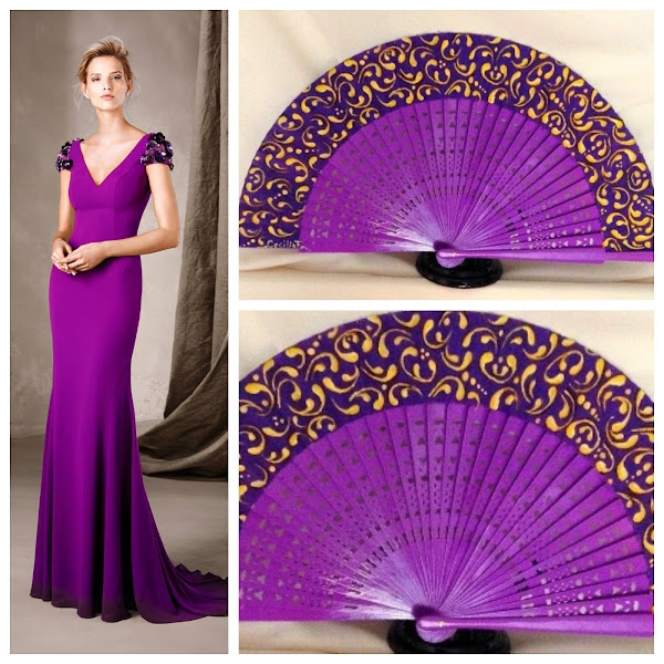 Cuando pongo un abanico sobre la mesa,nunca se muy bien por onde van a ir los pinceles,salvo los colores que voy a utilizar y en esta ocasión he escogido dos abanicos en violeta o morado,uno azulón y uno blanco.