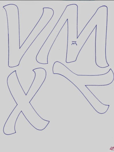 letras alargadas, con números.