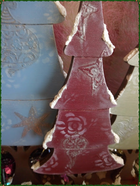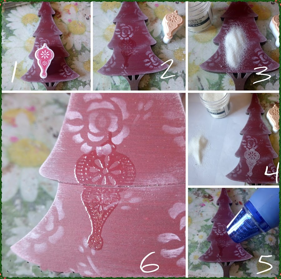 Podríamos dar por terminado el trabajo, pero se me ocurrió que quizás daba buen resultado hacer unos adornos con sellos y polvos de embossing, el efecto que conseguí quedo muy original y fino, ¿a ver que os parece?