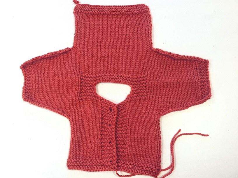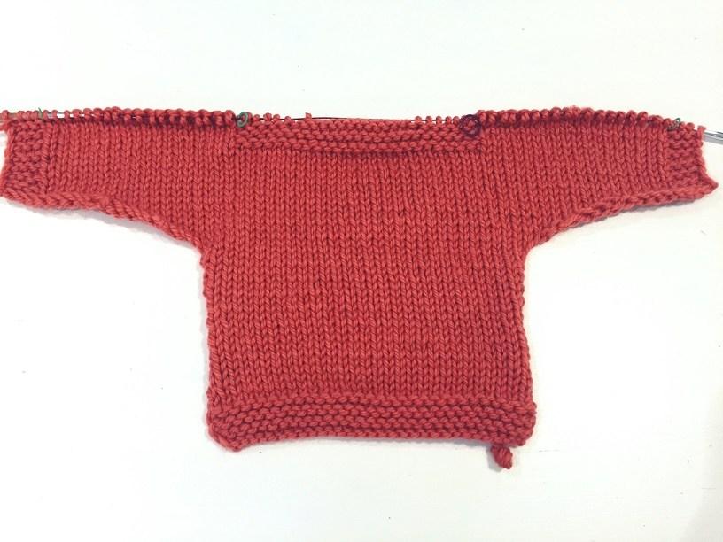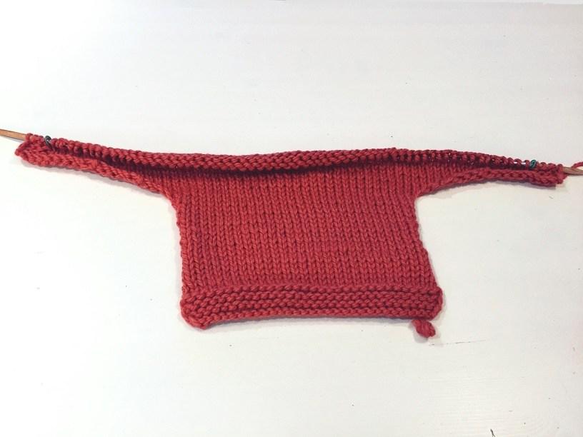 Una vez tejida la espalda, tienes que ir montando puntos a cada lado para ir formando la manga.