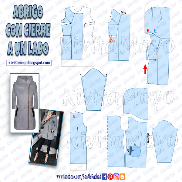 Para la capucha: Tomar de referencia la medida del hombro delantero (h) hacerlo coincidir con la misma medida en el hombro trasero y ubicarlo invertido como se ve en el dibujo.