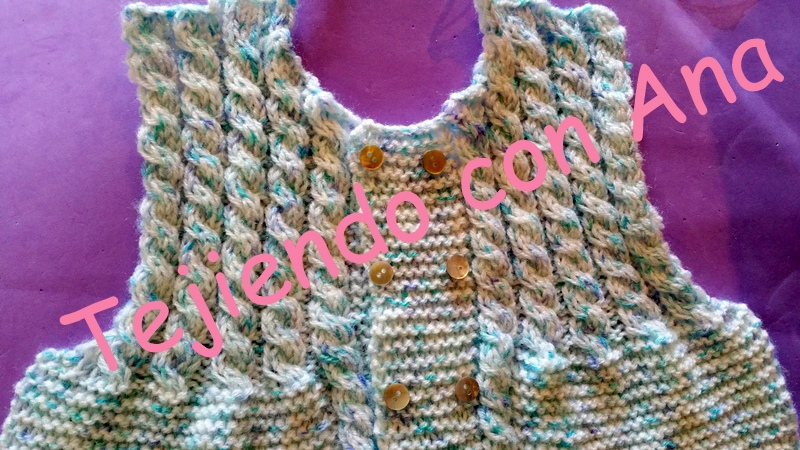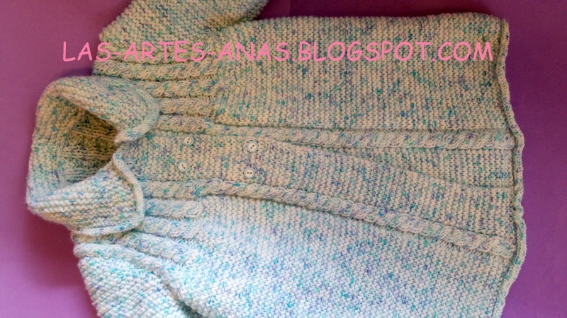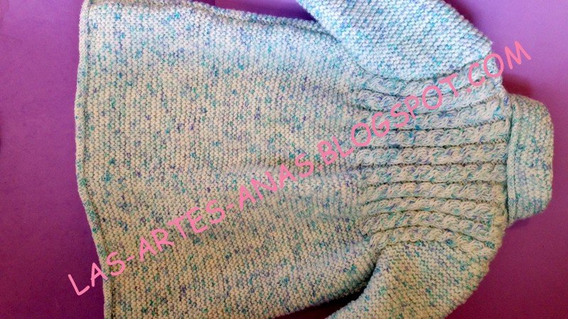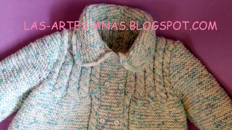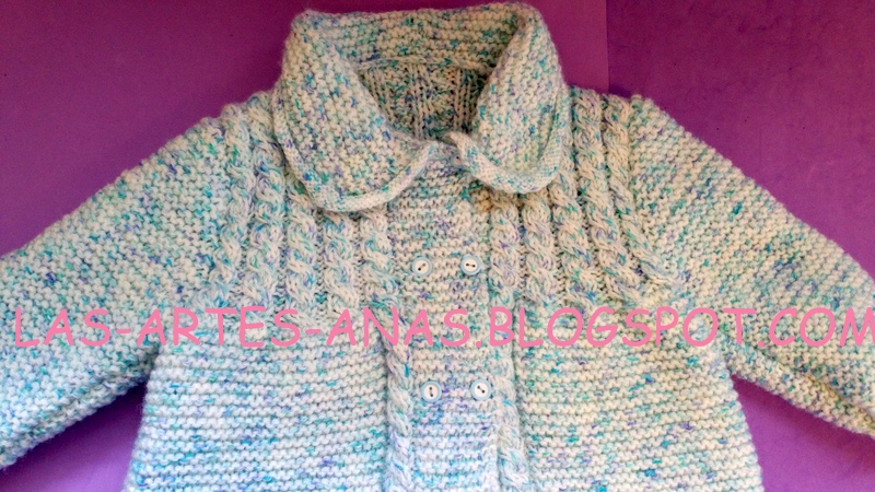 Abrigo para bebé de 1 año a año y medio, CONFECCIONADO CON LANA BEBÉ TRABAJADA DOBLE, agujas del 4 y medio , el canesú y los puños van trabajados con sencillas trenzas de 4 puntos derecho, alternando con 2 puntos revés,cruzando los puntos cada 4 vueltas pincha AQUÍ PARA VER EL VIDEO DE LA TRENZA, el cuerpo a PUNTO BOBO, Y LOS vivos o rulitos (opcional) van trabajados con una sola hebra y agujas del nº 3, recogiendo los puntos por el derecho de la labor y tejiendo 6 pasadas jersey revés