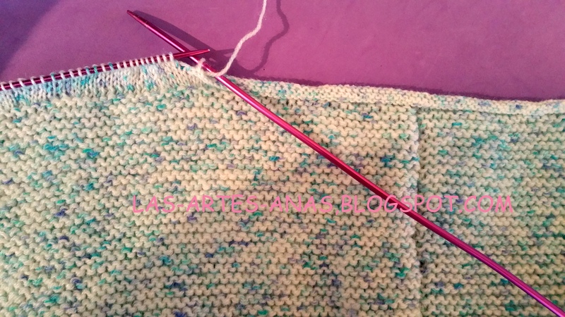 por el lado del derecho del cuello he tejido 6 pasadas a punto jersey, que al cerrarlo se encoge formando este decorativo rulo, ( opcional)