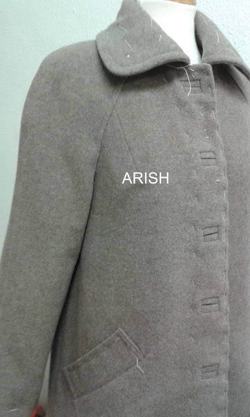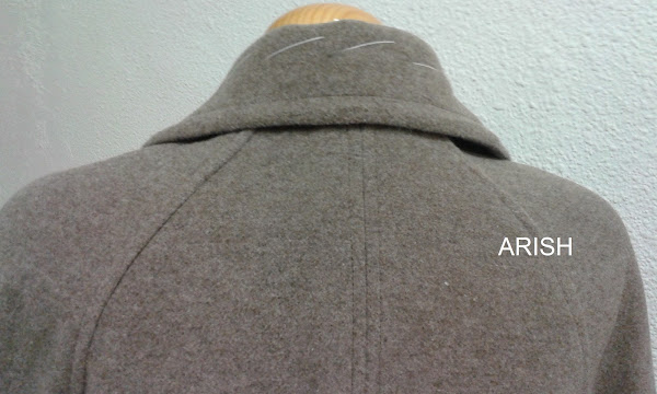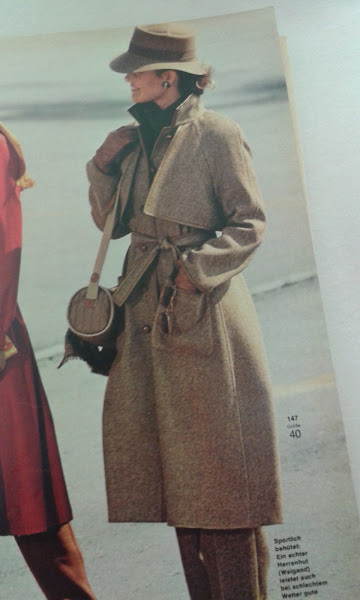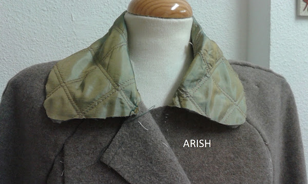 He usado un resto del forro para hacer la probatina del cuello y una vez probado me queda perfecto (opino que los patrones de aquéllas decadas...... eran extraordinarios....) únicamente le voy a alargar las mangas 2 cms. y el abrigo lo voy a acortar 1,5 cms. y aún así me queda larguito para que no me asomen los vestidos por debajo.