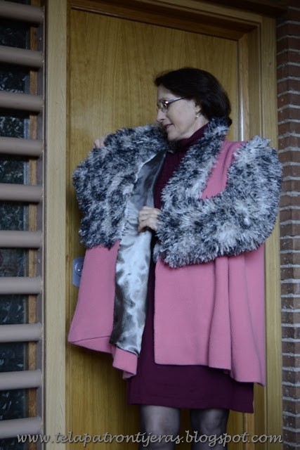 Cosimos el delantero y la espalda del abrigo, formando a la vez el cuello smoking y haciendo los bolsillos.