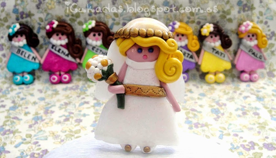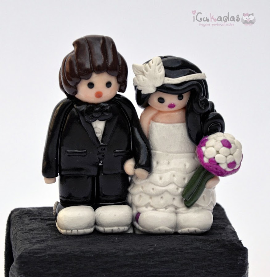 Pero también hay que pensar en la tarta, que por supuesto yo no se hacer, pero si los muñequitos personalizados que van encima.