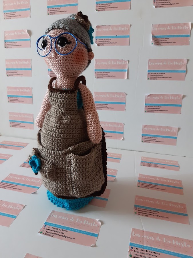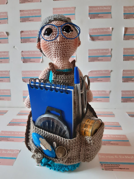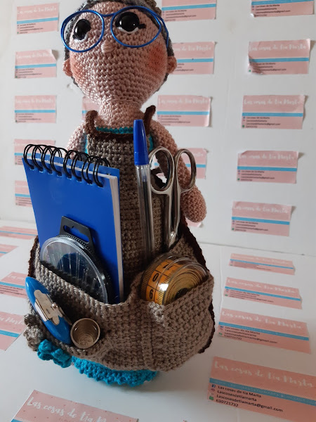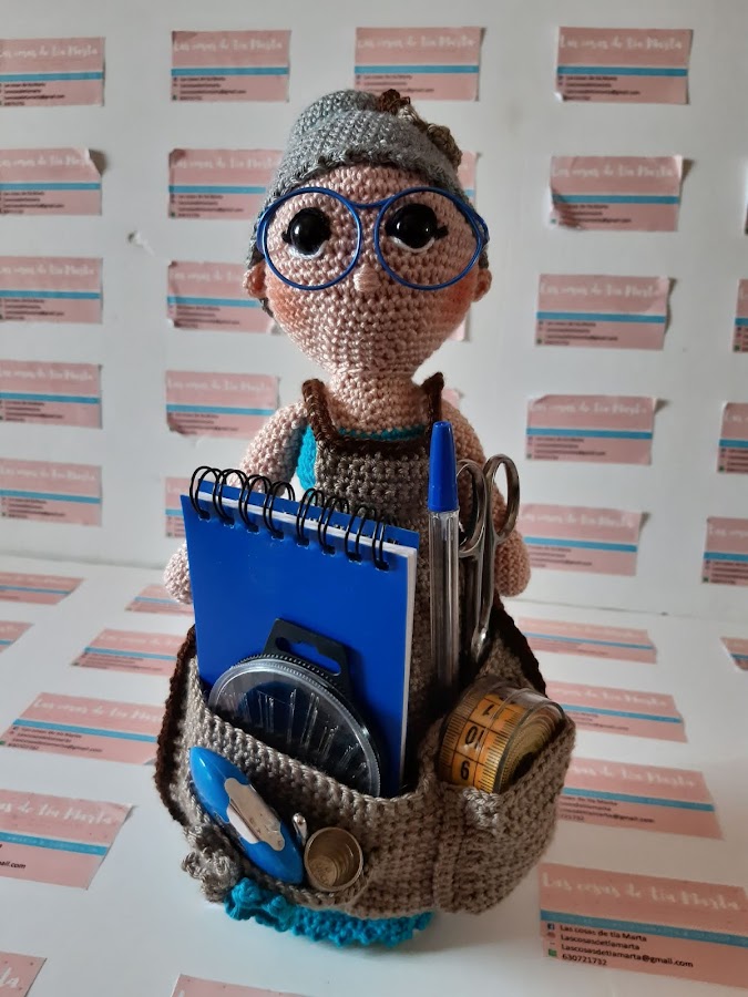Ha sido una experiencia muy enriquecedora y he aprendido y disfrutado un montón. Cómo agradecimiento he tejido una abuela costurero.