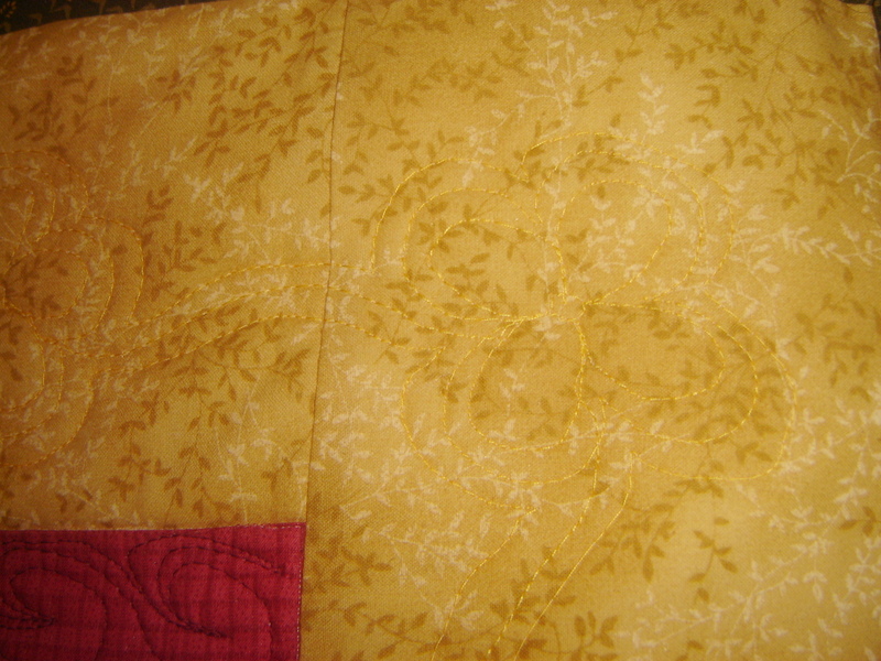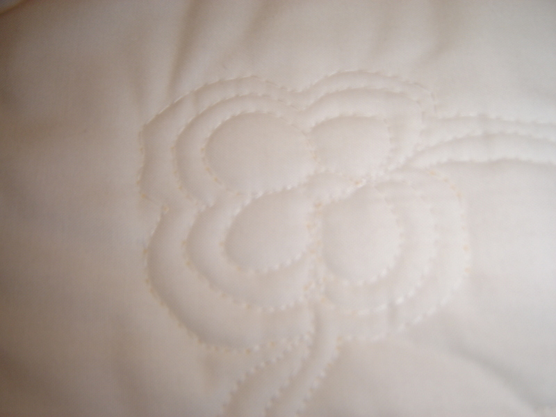 Por todo el alrededor del quilt le fui haciendo en acolchado libre también como unas flores con eco,no se aprecia muy bien por que son del mismo color casi el hilo que la tela.