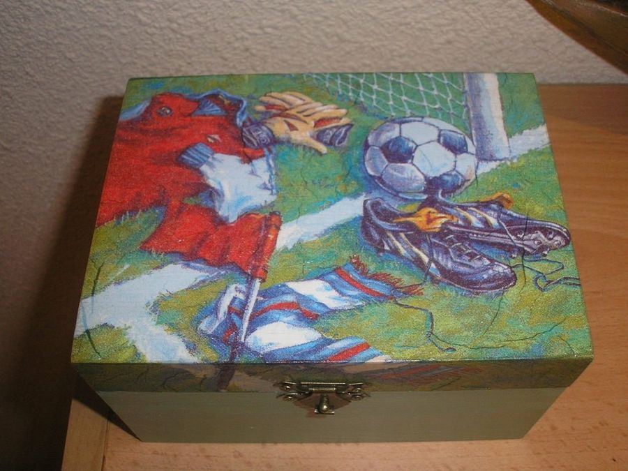 _Susan_ es la autora de esta bella caja, adornada con una escena irresistible para cualquier apasionado del fútbol. Sirve para sobremesa y también para colocar en una estantería, en vertical, a modo de cuadro.