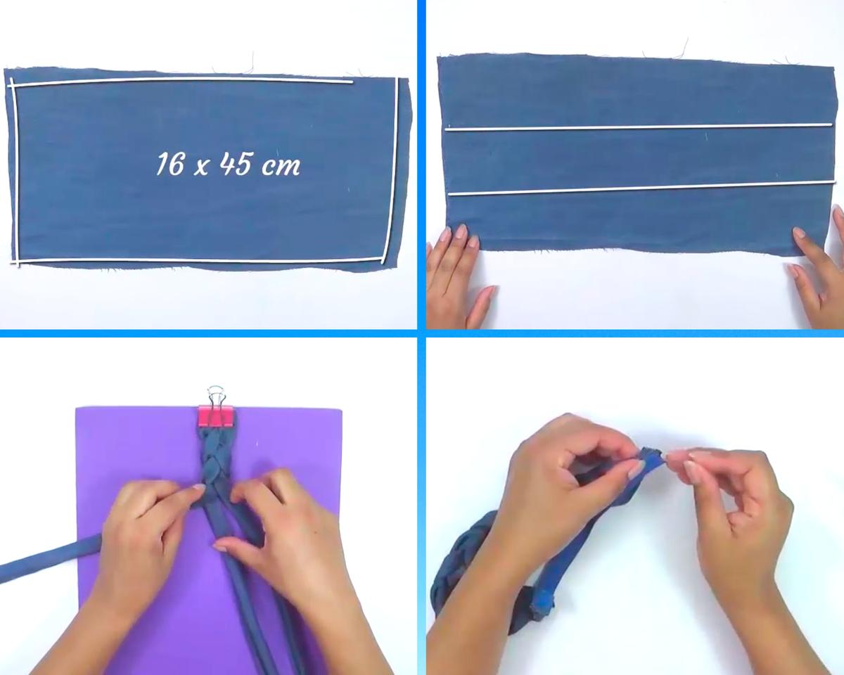 Asegura con una pinza las tres tiras y forma una trenza.