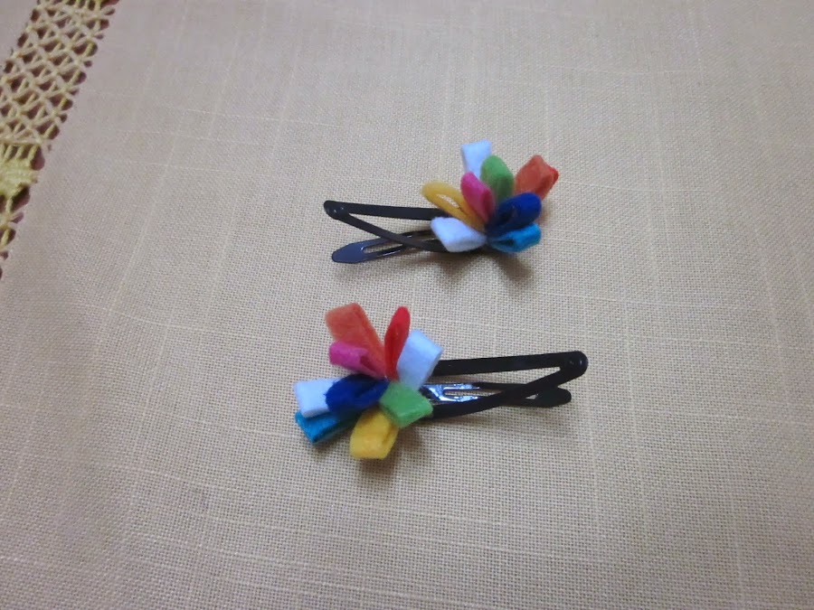 HORQUILLAS: FLORES DE COLORES CON LOS TROCITOS DE FIELTRO QUE VAN QUEDANDO POR AHÍ